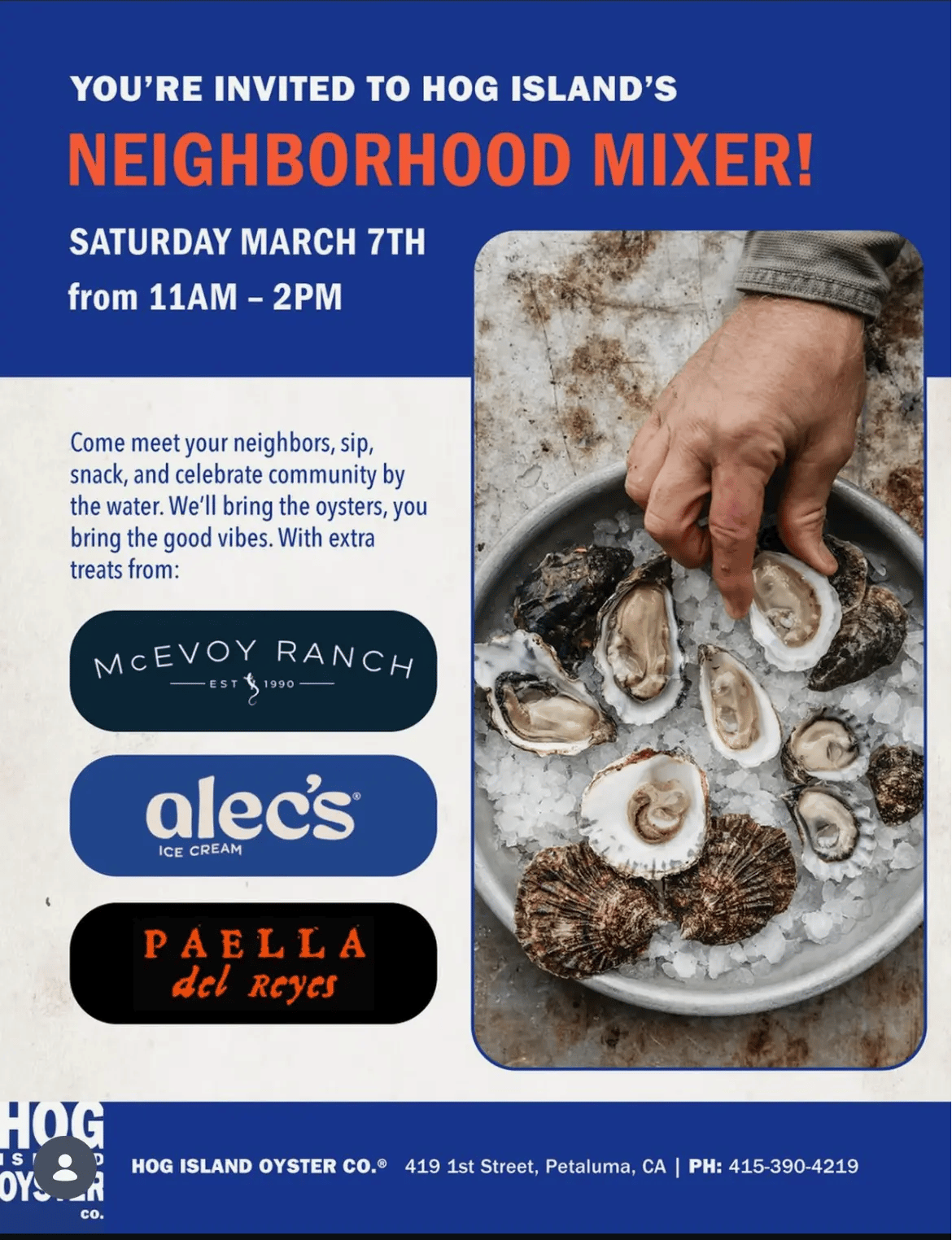 One of the best things about living in Petaluma is how often simple gatherings turn into meaningful community moments. This Saturday, March 7 from 11 a.m. to 2 p.m., the team at Hog Island Oyster Co. is hosting a Neighborhood Mixer—a relaxed afternoon designed to bring locals together over great food, good conversation, and a shared appreciation for the neighborhood.